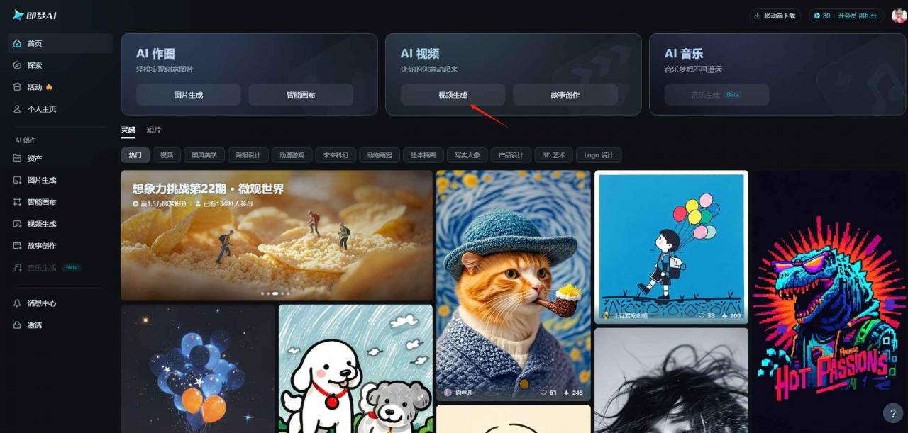 首先是 “即梦” 网址:https://jimeng.jianying.com/ 选择视频生成。