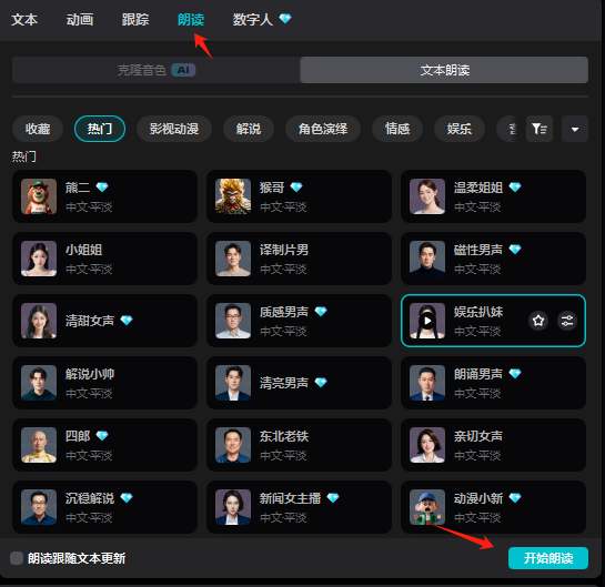 之后选择朗读,选择一个合适的声音,开始朗读。